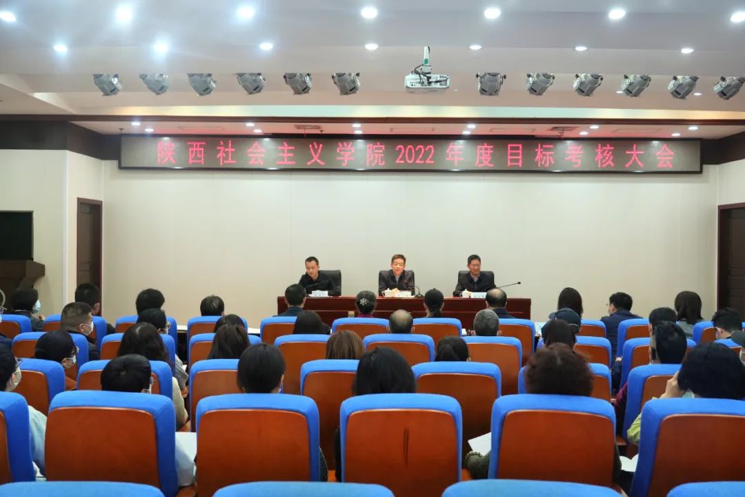 3月8日,省委统战部考核组一行5人对陕西社会主义学院2022年度目标任务完成情况进行考核?;嵋橛墒∥痴讲扛辈砍ぁ⑸挛魃缁嶂饕逖г旱澄榧?、常务副院长崔歆主持,院领导班子成员、全体教职工参加会议。