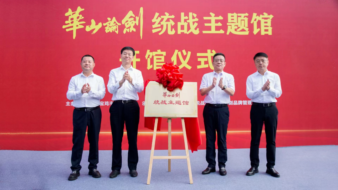 8月29日,由中共宝鸡市委统战部与华山论剑品牌管理有限公司共同打造的华山论剑统战主题馆,在宝鸡市凤翔区华山论剑产业园内正式开馆。省委统战部副部长、陕西社会主义学院党委书记、常务副院长崔歆,市委常委、统战部部长高宏真,凤翔区委书记王宏强,陕西省总商会副会长、华山论剑品牌管理有限公司董事长董小军共同为主题馆揭牌。